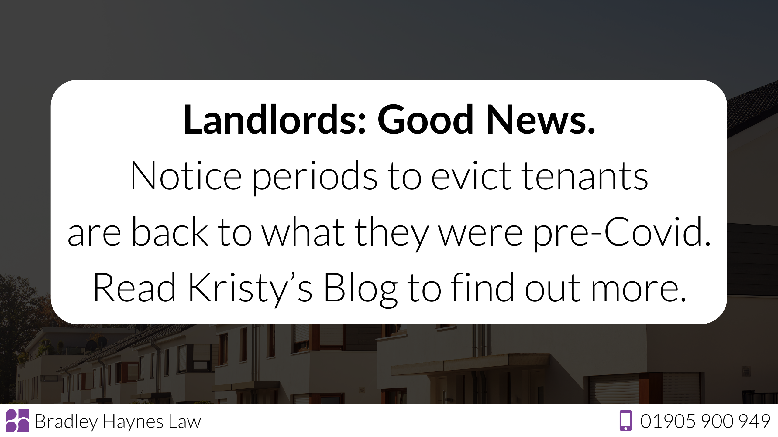 If you have any concerns about your tenants or would like advice on providing the correct documentation at the outset of a tenancy, or advice in evicting a tenant, please do not hesitate to contact Kristy Ainge, Senior Associate, Solicitor Advocate via 01905 900 949 or Kristy@bradleyhayneslaw.co.uk. Kristy is more than happy to have a conversation about how she can help with your legal needs.